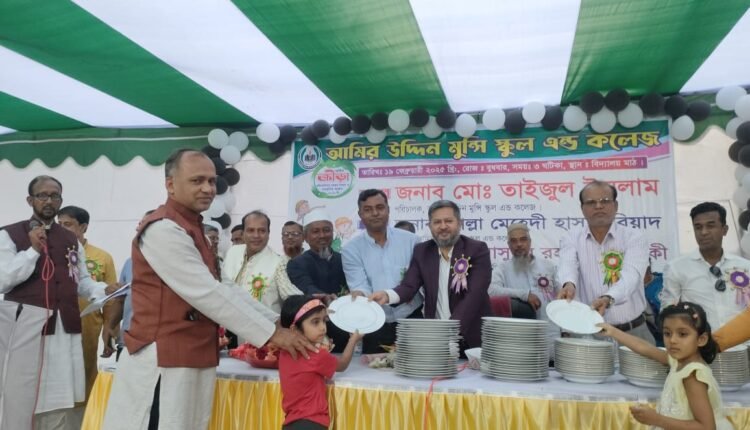গাজীপুর সিটির পূবাইল ৪২নং ওয়ার্ডের কামারগাঁও আমির উদ্দিন মুন্সি স্কুল এন্ড কলেজের বার্ষিক ক্রীড়া প্রতিযোগিতা পুরষ্কার বিতরণ ও সাংস্কৃতিক সন্ধ্যা অনুষ্ঠিত হয়েছে।বুধবার ১৯ ফেব্রুয়ারী অত্যান্ত উৎসবমুখর পরিবেশে দিনব্যাপী বিদ্যালয় প্রাঙ্গণে ছাত্র-ছাত্রীদের বিভিন্ন ধরনের খেলা অনুষ্ঠিত হয়।খেলা শেষে বিজয়ী ছাত্রছাত্রীদের হাতে পুরস্কার তুলে দেওয়া হয় এবং সন্ধ্যাকালীন সাংস্কৃতিক অনুষ্ঠান শুরু হয়।অনুষ্ঠানে প্রধান অতিথি হিসেবে উপস্থিত ছিলেন আমির উদ্দিন মুন্সি স্কুল এন্ড কলেজের পরিচালক মো: তাইজুল ইসলাম।পূবাইল আদর্শ বিশ্ববিদ্যালয় কলেজের সহকারী অধ্যাপক রফিকুল ইসলাম রফিকের সভাপতিত্বে অনুষ্ঠানে বিশেষ অতিথি হিসেবে উপস্থিত ছিলেন মো.আব্দুর রশিদ ভারপ্রাপ্ত অধ্যক্ষ পূবাইল আদর্শ বিশ্ববিদ্যালয় কলেজ।পূবাইল থানা বিএনপির সিনিয়র সহ-সভাপতি দেলোয়ার হোসেন,হারেজ আলী উচ্চ বিদ্যালয়ের প্রধান শিক্ষক আব্দুর রশিদ। উদ্বোধক হিসেবে উপস্থিত ছিলেন গাজীপুর মহানগর কেজি স্কুল এসোসিয়েশনের সদস্য সচিব ও পূবাইল কলেজের সহকারী অধ্যাপক মো.মাসুদুর রহমান সিদ্দিকী পূবাইল আদর্শ বিশ্ববিদ্যালয় কলেজের শিক্ষক প্রতিনিধি ফাইজুল ইসলাম সহকারী অধ্যাপক লুৎফর রহমান।আরো উপস্থিত ছিলেন, জহুরা খাতুন আদর্শ উচ্চ বিদ্যালয়ের প্রধান শিক্ষক আকরাম হোসেন মাস্টার, ৪০ নং ওয়ার্ড কেজি স্কুল এসোসিয়েশনের সভাপতি মকবুল হোসেন সহ স্কুলের শিক্ষক শিক্ষিকা সহ বিভিন্ন ব্যক্তিবর্গ এসময় উপস্থিত ছিলেন।