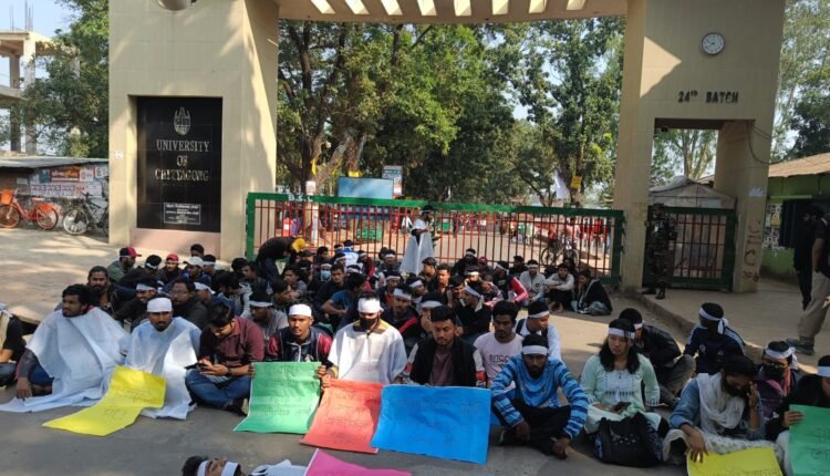 একাডেমিক জট নিরসন ও স্থায়ী শিক্ষক নিয়োগের দাবিতে শাটল ট্রেন বন্ধ করে চট্টগ্রাম বিশ্ববিদ্যালয়ের মেইন গেটে অবস্থান নেয় ফিজিক্যাল এডুকেশন এন্ড স্পোর্টস সাইন্স বিভাগের শিক্ষার্থীরা। বুধবার (১৭ জানুয়ারি) দুপুর ২:৩০ এর বিশ্ববিদ্যালয় থেকে শহরগামী শাটল ট্রেন বন্ধ করে আন্দোলন করে শিক্ষার্থীরা।