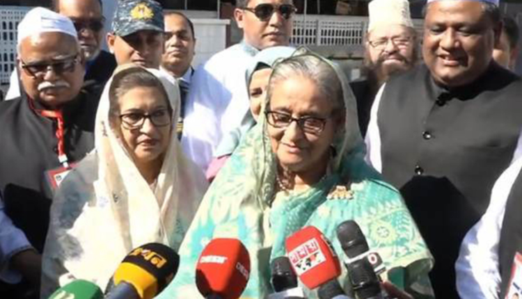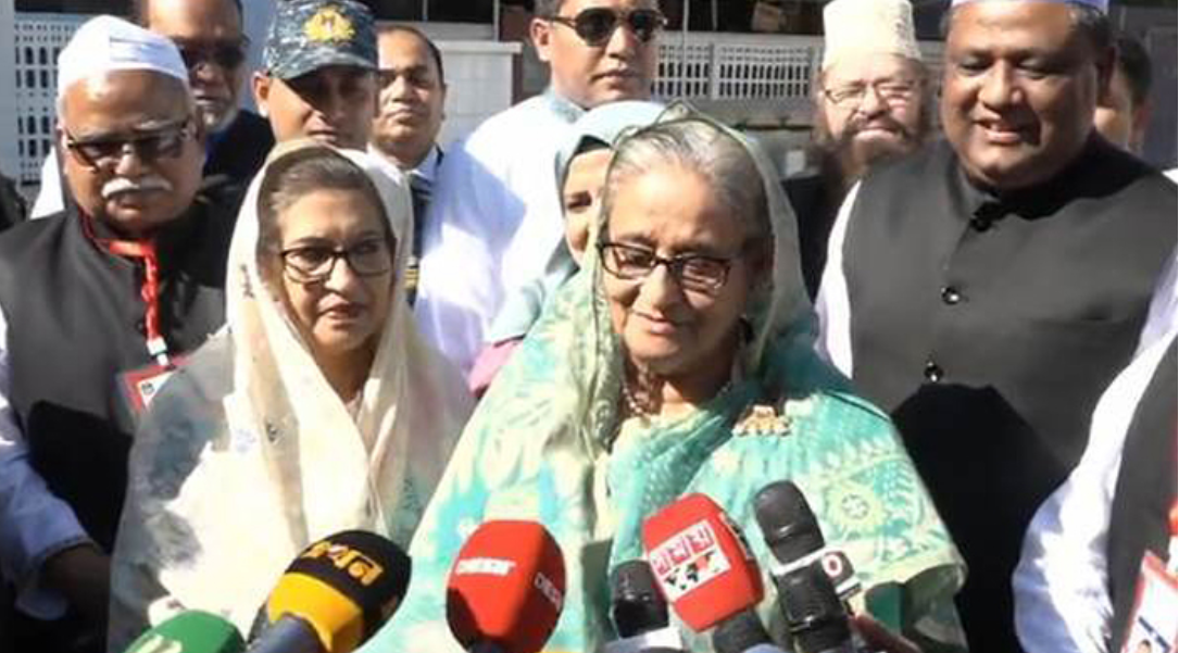 সিলেটের হজরত শাহজালাল (রহ.) মাজার জিয়ারত শেষে সাংবাদিকদের প্রশ্নের জবাবে প্রধানমন্ত্রী শেখ হাসিনা বলেছেন,, অগ্নি সন্ত্রাসীদের দেশের মানুষ প্রত্যাখ্যান করেছে। সাধারণ মানুষ ভোট চায়, উন্নয়ন চায়। তাই বিএনপি-জামায়াতের হরতাল অবরোধে তারা সাড়া দিচ্ছেন না।