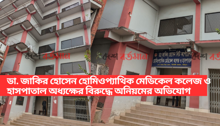 আর্থিক লেনদেনের মাধ্যমে অনুপস্থিত ইন্টার্ন চিকিৎসকদের ছাড়পত্র দেওয়ার অভিযোগ উঠেছে ডা. জাকির হোসেন সিটি কর্পোরেশন হোমিওপ্যাথিক মেডিকেল কলেজের অধ্যক্ষ ডা. নুরুল আমিনের বিরুদ্ধে। যেখানে নিয়মবর্হিভূতভাবে ১৫০০ টাকা করে নিয়ে উপস্থিতি দেখিয়ে ছাড়পত্র দেওয়া হচ্ছে। এছাড়া অনুপস্থিত ছাত্র-ছাত্রীদের উপস্থিতি দেখানো, বাৎসরিক নির্বাচনী পরীক্ষায় অংশ গ্রহণ না করেও পাশ দেওয়াসহ নানা অনিয়মের অভিযোগ উঠেছে ওই অধ্যক্ষের বিরুদ্ধে। গত বৃহস্পতিবার চট্টগ্রাম সিটি কর্পোরেশনের প্রধান নির্বাহী কর্মকর্তা বরাবর অনিয়মের অভিযোগটি তোলেন কলেজের প্রাক্তন শিক্ষার্থী ডা. মনিরুল ইসলাম। তবে অভিযোগ সত্য নয় বলে দাবি অধ্যক্ষের।