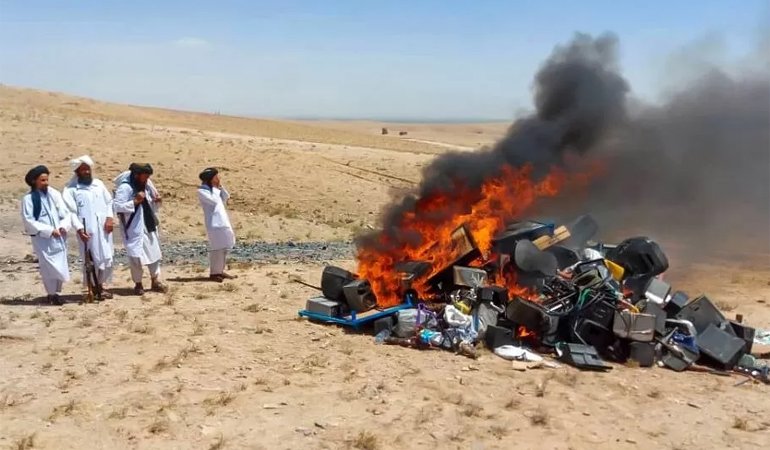সঙ্গীতকে ‘নৈতিক দুর্নীতির কারণ’ তকমা দিয়ে আফগানিস্তানের পশ্চিম হেরাত প্রদেশে বেশ কিছু বাদ্যযন্ত্র পুড়িয়ে দিয়েছে তালেবান সরকার।