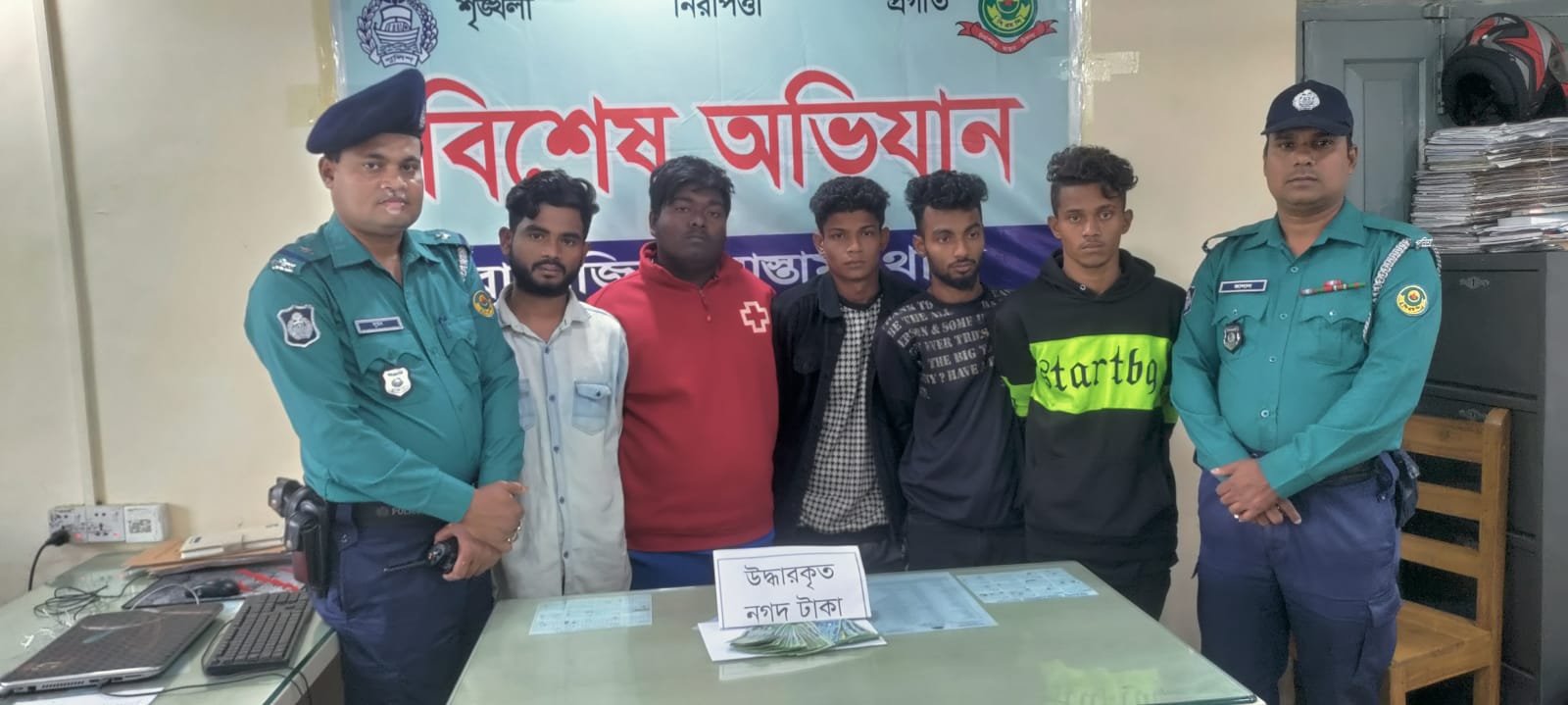 গ্রেফতারকৃত আসামিরা হলেন- বায়েজিদ বোস্তামী থানার আলী নগর এলাকার মৃত আনোয়ার হোসেনের ছেলে আমিনুল ইসলাম শরীফ (২২), কিশোরগঞ্জের অষ্টগ্রাম থানার রমজান আলীর ছেলে তোফাজ্জল হোসেন হৃদয় (২২), বায়েজিদ বোস্তামী থানার মুরাদনগর এলাকার মৃত মো. ইয়াছিনের ছেলে মো. হৃদয় (২২), ভূজপুর থানার সিকদার বাড়ীর নুরুল আবছারের ছেলে মো. মিনহাজুল আবেদীন মারুফ (২২) ও বায়েজিদ বোস্তামী থানার মুরাদনগরের আবদুল ছালাম কন্ট্রাক্টরের বাড়ির আবদুল মজিদের ছেলে ওয়াজেদ হোসেন টিটু (২২)।