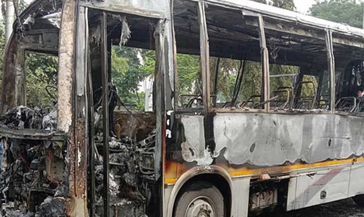 রাজধানীর আগারগাঁও ট্রাফিক সিগন্যালে একটি শীতাতপনিয়ন্ত্রিত (এসি) বাসে আগুন লেগেছে।