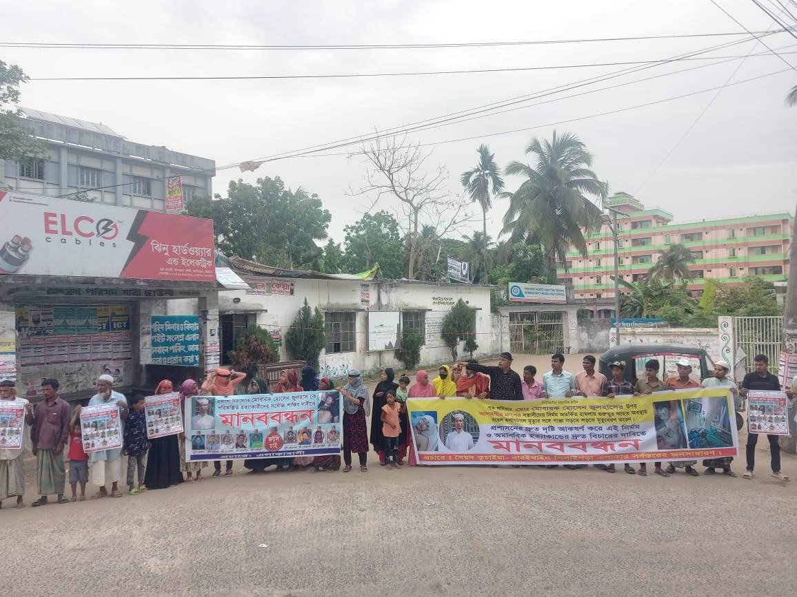 মানববন্ধনে এলাকাবাসীর পক্ষে মোহাম্মদ ফরিদ, কায়সার, আবুল হাশেম, সেলিম ও আব্দুল আলিম বক্তব্য রাখেন।