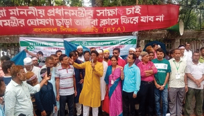 সোমবার (৩১ জুলাই) জাতীয় প্রেস ক্লাবের সামনে লাগাতার অবস্থান কর্মসূচিতে অংশ নেওয়া শিক্ষকরা এ ঘোষণা দেন। গত ১১ জুলাই থেকে শিক্ষকরা এ আন্দোলন করছেন।