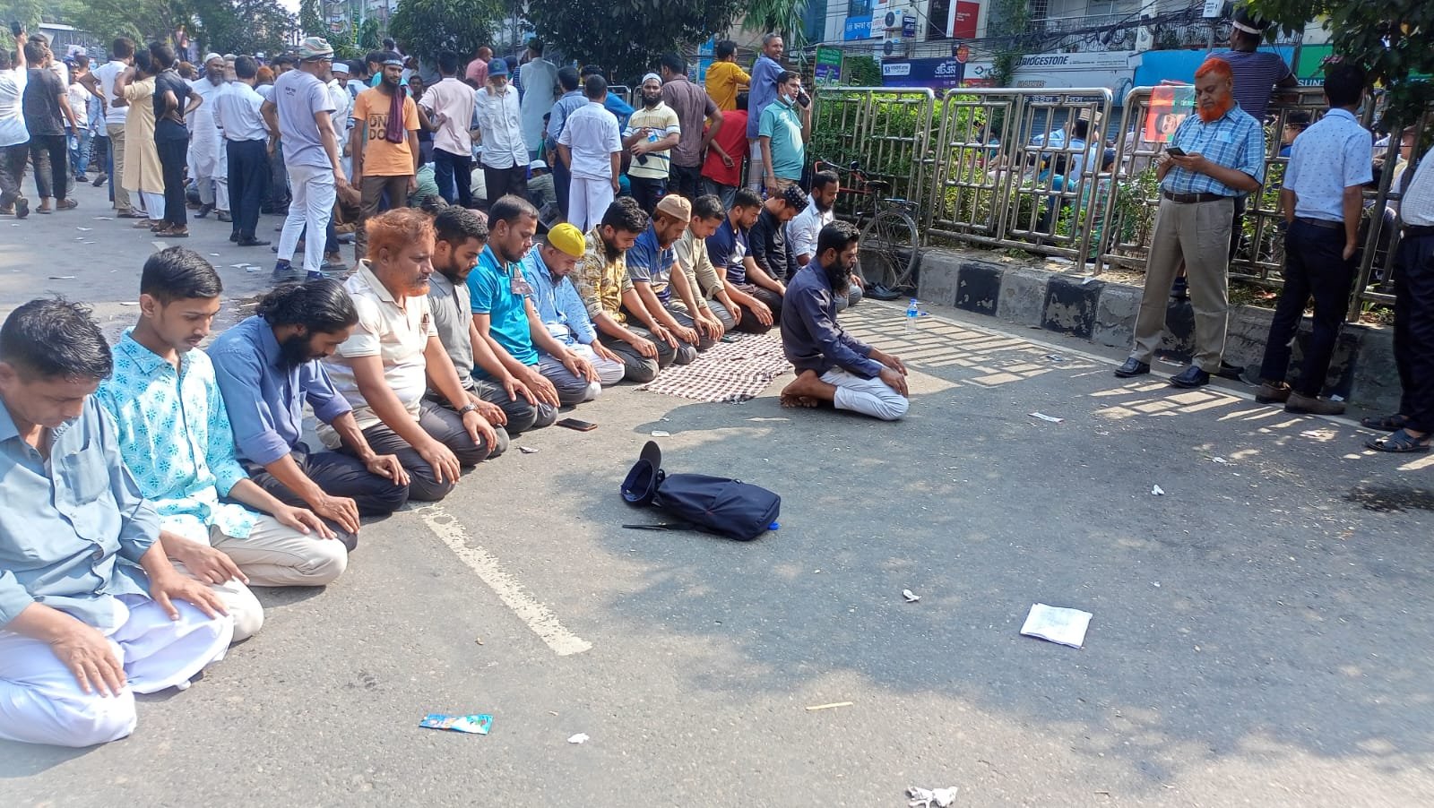 সকাল ১০টার পর থেকে তারা এ এলাকায় অবস্থান নিতে শুরু করেন বলে জানা যায়। জামায়াত নেতাকর্মীদের ঠেকাতে আরামবাগ মোড়ে ও মতিঝিলের শাপলা চত্বর থেকে নটর ডেম কলেজের দিকে যাওয়ার পথে দুইটি ব্যারিকেড দিয়েছে পুলিশ। এর আগে সকাল সাড়ে ৯টার দিকে আরামবাগের গলি থেকে জামায়াতে ইসলামীর নেতাকর্মীরা জড়ো হয়ে স্লোগান দিয়ে প্রবেশ করতে চাইলে পুলিশ লাঠিচার্জ করে তাদের ছত্রভঙ্গ করে দেয়।