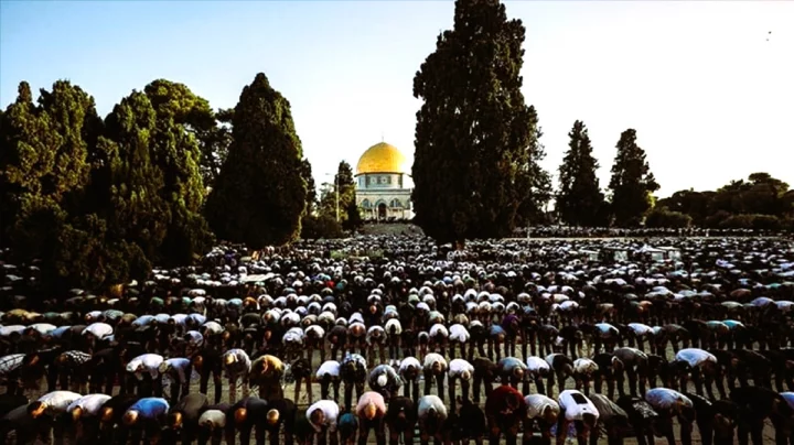ফিলিস্তিনের অধিকৃত পূর্ব জেরুজালেমের আল-আকসা মসজিদে প্রায় ৪০ হাজার মুসল্লি ঈদুল আজহার নামাজ আদায় করেছেন। কিন্তু সেখানে কোনো উৎসবমুখর পরিবেশ ছিল না। রোববার আল-আকসার ঈদের জামাতে গাজা উপত্যকায় আট মাস ধরে চলা ইসরাইলের হামলায় নিহতদের জন্য শোক প্রকাশ করেছেন মুসল্লিরা। খবর আনাদোলু এজেন্সি’র। ঈদুল আজহায় আল-আকসা মসজিদ প্রাঙ্গণে মুসল্লিদের প্রবেশে কড়াকড়ি আরোপ করেছিল ইসরাইলি বাহিনী। ব্যাপক তল্লাশির পর ঈদের নামাজ আদায়ের জন্য প্রাঙ্গণে প্রবেশ করতে পারেন অনেকে। তবুও নামাজের কাতার ছাড়িয়ে যায় আল আকসা প্রাঙ্গণ। জেরুজালেমের ইসলামিক এনডাউমেন্টস বিভাগ থেকে এক বিবৃতিতে জানানো হয়, প্রায় ৪০ হাজার মুসল্লি সেখানে ঈদুল আজহার নামাজ আদায় করেন। যদিও কয়েক হাজার মুসল্লিকে সেখানে প্রবেশ করতে দেওয়া হয়নি।