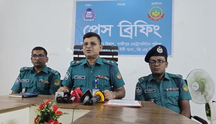 গতকাল বুধবার রাত সাড়ে ১১টায় গাজীপুর মেট্রোপলিটন পুলিশের টঙ্গীস্থ অপরাধ দক্ষিণ বিভাগে এক জরুরি সাংবাদিক সম্মেলনে উপকমিশনার এন এম নাসিরুদ্দিন এসব কথা বলেন