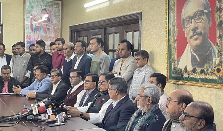 আওয়ামী লীগ এবং দলের স্বতন্ত্র প্রার্থীরা কোনো ধরনের সহিংসতায় জড়িয়ে আইন ভাঙলে নির্বাচন কমিশন ‘যুক্তিযুক্ত’ যে আইনি পদক্ষেপ নেবে, তাতে দলের সায় আছে বলে জানিয়েছেন আওয়ামী লীগের সাধারণ সম্পাদক ওবায়দুল কাদের। রোববার (২৪ ডিসেম্বর) রাজধানীর ধানমন্ডিতে আওয়ামী লীগ সভাপতির রাজনৈতিক কার্যালয়ে সংবাদ সম্মেলনে তিনি বলেন, ‘ আমরা শান্তিপূর্ণ নির্বাচন চাই। নির্বাচনকে নিয়ে বা ঘিরে কোনো সহিংসতা চাই না। একটা ভায়োলেন্স ফ্রি পিসফুল নির্বাচন শেখ হাসিনা আমাদের নেত্রী তিনি সেটা নিজেই বারবার বলছেন। ‘আওয়ামী লীগের প্রার্থী কিংবা কোনো প্রার্থী সহযোগী সহিংসতায় যদি জড়ায়, সে ব্যাপারে নির্বাচন কমিশন যে আইনগত ব্যবস্থা নেবে আমরা সমর্থন করি। কোনো প্রকার নির্বাচন বিরোধী সহিংস কর্মকাণ্ড আমরা সমর্থন বা প্রশ্রয় দেবো না।’ তিনি বলেন, আওয়ামী লীগের প্রার্থীর পাশাপাশি স্বতন্ত্র প্রার্থী যারা হয়েছেন, এরা আমাদের দলের নেতাকর্মী, তাদেরকেও প্রতিদ্বন্দ্বী হিসেবে ভাবতে হবে এবং কোনো প্রকার পক্ষপাত আর কোনো প্রকার বৈরী মনোভব প্রদর্শন যেটা সমর্থনযোগ্য নয়। আইন তার নিজস্ব গতিতে চলবে। ‘এখানে যারাই নির্বাচন বিরোধী কোনো প্রকার সহিংসতা তৎপরতা করবে, তারা যেই হোক যারাই হোক কারো ব্যাপারে পক্ষপাতের কোনো সুযোগ নেই। আইন ভঙ্গ করলে আইনগত ব্যবস্থা নেওয়া হবে। নির্বাচন কমিশন যে ব্যবস্থা নেবে আমরা আগেই বলেছি তাদের যুক্তিযুক্ত যেকোনো ব্যবস্থা আমরা সমর্থন দেবো।’ বিএনপির অসহযোগ আন্দোলনের সমালোচনা করে আওয়ামী লীগের সাধারণ সম্পাদক বলেন, যারা নির্বাচন বর্জনের ডাক দিয়েছেন, দেশের জনগণ তাদের বর্জন করা শুরু করেছে। খাজনা দেবে না, ট্যাক্স দেবে না, ইউটিলিটি বিল দেবে না, এই ধরনের উদ্ভট কথা হাস্যকর। দেশ কি আরেকবার স্বাধীন হচ্ছে? এটা কি বঙ্গবন্ধুর অসহযোগ? কি দুঃসাহস! মাথা খারাপ হয়ে গেছে এদের। ‘নির্বাচন করলেও ব্যর্থ, আন্দোলন করে ব্যর্থ; এখন তাদের সামনে আর কি আছে? তারা এই নির্বাচন বর্জন করার মধ্য দিয়ে তাদের রাজনৈতিক অস্তিত্ব আরো সংকুচিত হবে ভবিষ্যতে, অনিশ্চয়তা বাড়বে এবং নেগেটিভ রাজনীতির জন্য তারা সন্ত্রাসের পথ বেছে নিয়েছে। এই রাজনীতি আর গণতন্ত্র বিপরীতমুখী’, বলেন ওবায়দুল কাদের। তিনি বলেন, বিল না দিলে সব ধরনের লাইন কেটে যাবে সোজা কথা। খাজনা ট্যাক্স না দিলে শাস্তি পেতে হবে। অসহযোগ বলবেন, ব্যাংকের সাথে লেনদেন না করতে দলের লোকদের বলছেন। আপনাদের অনেকেই আঙ্গুল ফুলে কলাগাছ। আগেই হয়ে গেছে। এদের অনেকের ব্যাংকে লেনদেন আছে। তারা তারেক রহমানকের ডাক শুনতে গেলে তাদের নিজেদেরই সব যাবে। আমও যাবে, ছালাও যাবে। কাজেই তারেকের যাকে তারা সাড়া দেবে এমনটা মনে করার কোনো কারণ নেই। তারেক রহমানকে রাজপ