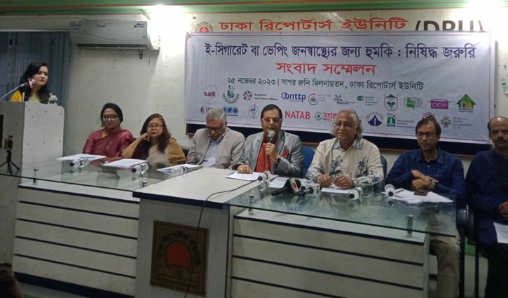 লিখিত বক্তব্যে বলা হয়, সম্প্রতি স্বাস্থ্য ও পরিবার কল্যাণ মন্ত্রণালয় ‘ধূমপান ও তামাকজাত দ্রব্য ব্যবহার (নিয়ন্ত্রণ) আইনের’ সংশোধনী প্রস্তাবে ই-সিগারেটের প্রচার, প্রসার, আমদানি, রপ্তানি, পরিবেশন, বিপণন নিষিদ্ধের প্রস্তাব দেওয়ার পর কয়েকটি বহুজাতিক সিগারেট কোম্পানি বিভিন্ন উপায়ে দেশে অত্যন্ত ক্ষতিকর এ পণ্যের প্রচারে নতুন নতুন পন্থা অবলম্বন করছে। জনস্বাস্থ্য বিশেষজ্ঞদের মতে ই-সিগারেট উৎপাদন ও প্রসারে সিগারেট কোম্পানির উদ্যোগ জনস্বাস্থ্যের জন্য চরম সংকটের কারণ হতে পারে। বক্তারা বলেন, বিদেশি সিগারেট কোম্পানি বিএটি সম্প্রতি বাংলাদেশে ভোক্তাদের আধুনিক জীবনধারার কথা উল্লেখ করে নতুন কিছু আন্তর্জাতিকমানের পণ্যের আমদানি করার অনুমতি চেয়ে বাণিজ্য মন্ত্রণালয় বরাবর চিঠি দিয়েছে। চিঠিতে তারা এ ধরনের পণ্যের চাহিদা নিরুপণে দেশের বাজারে এসব পণ্য বিক্রয় করবে এবং পরবর্তীতে স্থায়ীভাবে এ পণ্যের উৎপাদন, পরিবেশন, বিপণন ও রপ্তানি করার ইচ্ছে প্রকাশ করেছে। তাদের এ ধরনের প্রচেষ্টা দেশের জনস্বাস্থ্যের জন্য অত্যন্ত উদ্বেগের বিষয়। গণমানুষের কথা চিন্তা করে অতিদ্রুত ই-সিগারেট নিষিদ্ধ করতে হবে।