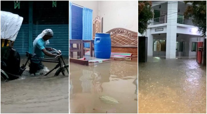 সরেজমিনে বিভিন্ন এলাকায় হাঁটু-কোমর সমান পানি দেখা গেছে। জলাবদ্ধতায় আবার স্রোত দেখা গেছে। স্রোতের ধারা এমন যেন প্রতিটি রাস্তা ছড়া খালে পরিণত হয়েছে। বৃষ্টি আর ড্রেনের নোংরা পানি রাস্তা ছাড়িয়ে মানুষের ঘরে ঢুকে গেছে।
