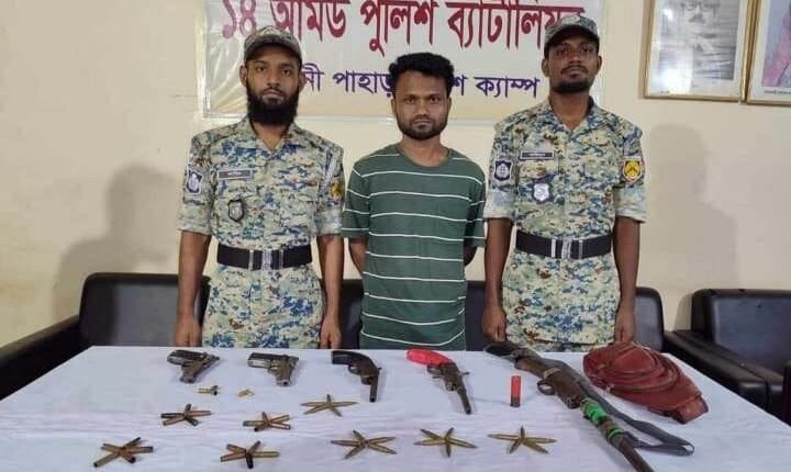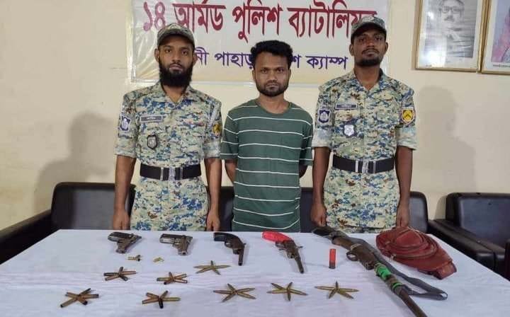 এ সময় তাঁর কাছ থেকে ২টি বিদেশী পিস্তল ও ২ রাউন্ড গুলি পাওয়া যায়।