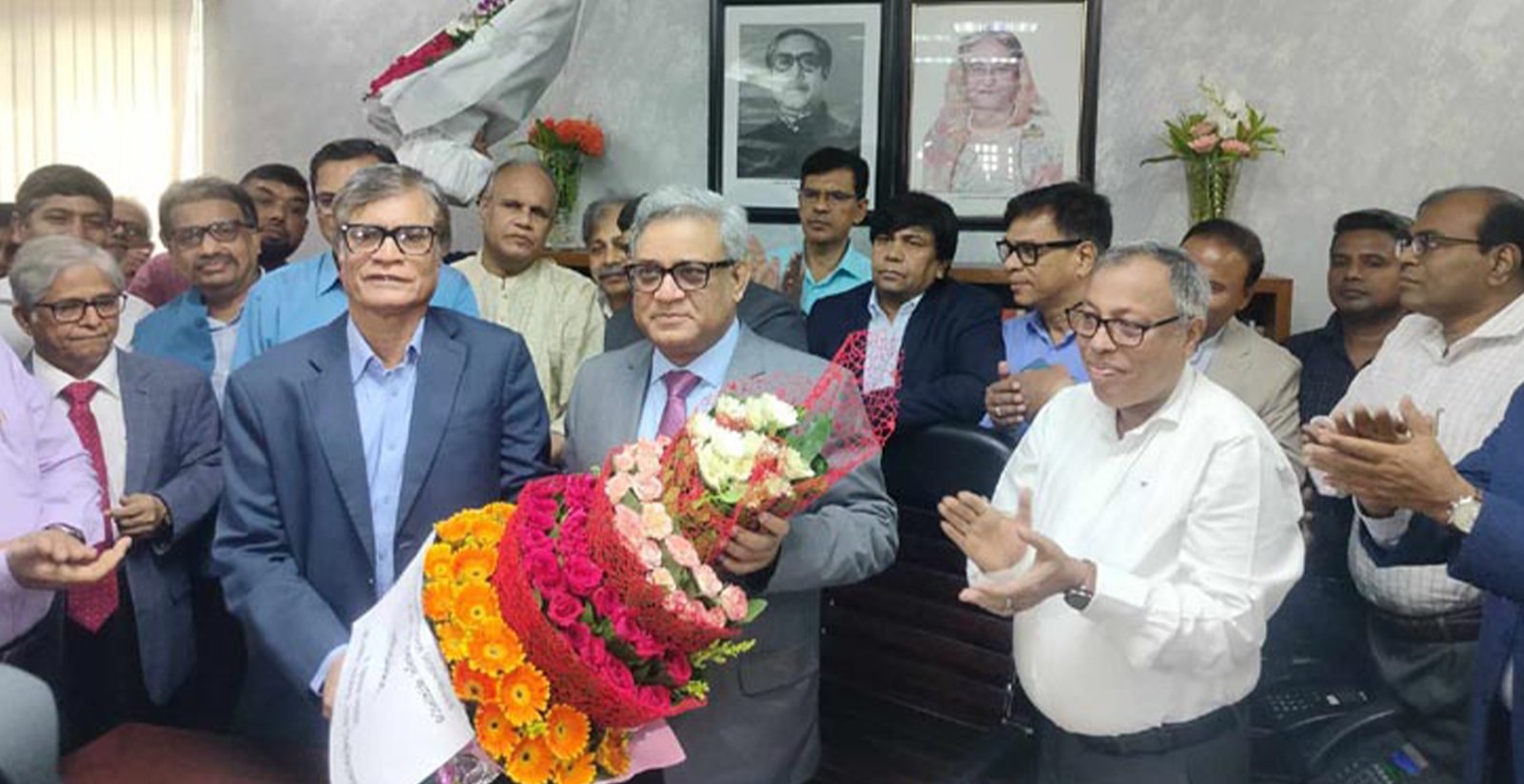 পরে বিশ্ববিদ্যালয়ের নবাব নওয়াব আলী চৌধুরী সিনেট অডিটোরিয়ামে আয়োজিত অনুষ্ঠানে বিশ্ববিদ্যালয়ের উপ-উপাচার্য (প্রশাসন), কোষাধ্যক্ষ, ডিন, প্রভোস্ট, শিক্ষকসহ বিভিন্ন শ্রেণি-পেশার সামাজিক ও রাজনৈতিক সংগঠন নতুন উপাচার্যকে ফুল দিয়ে বরণ করে নেন।
