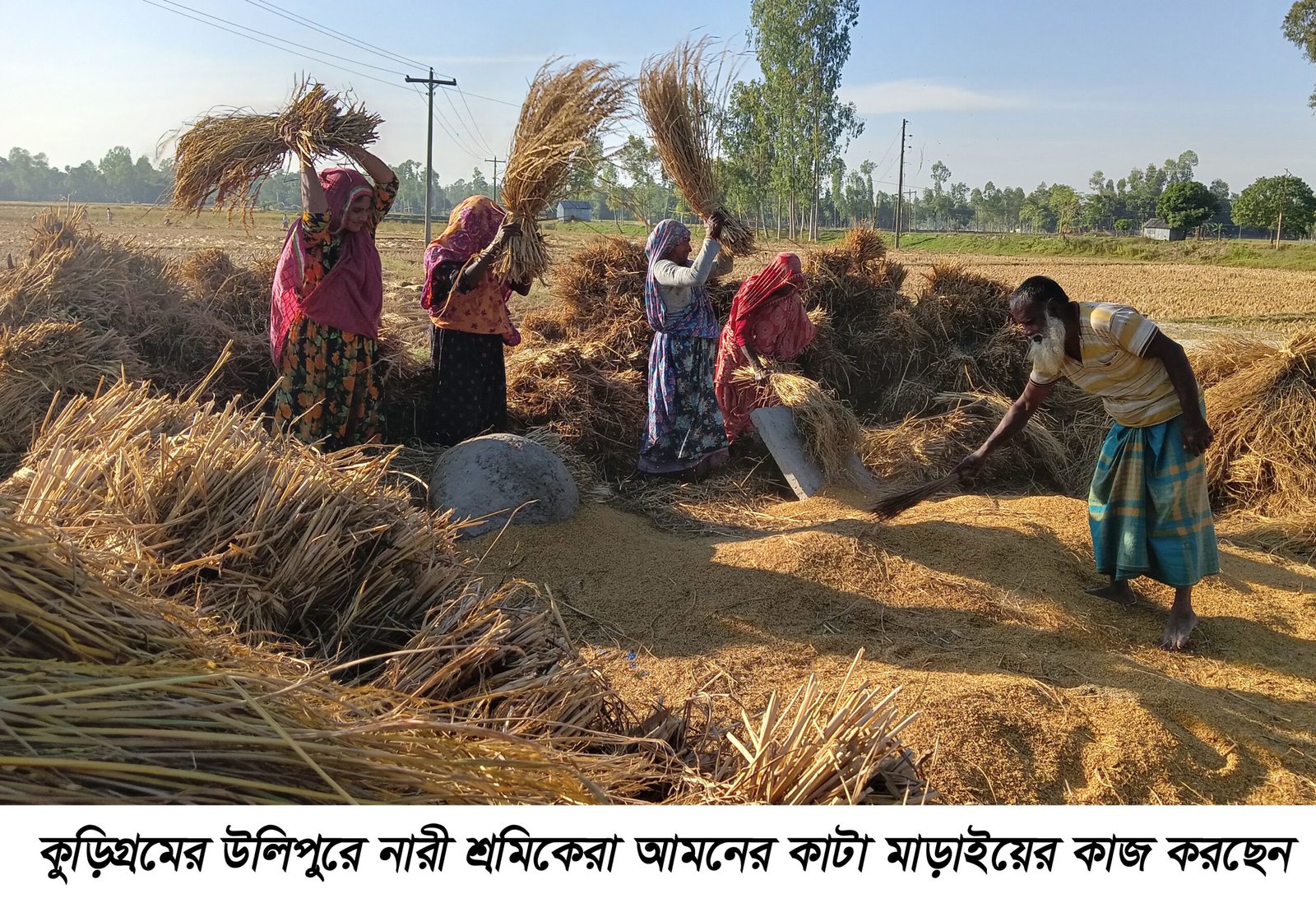 কুড়িগ্রামের উলিপুরে আমন ধান কাটা ও মাড়াইয়ে ব্যস্ত সময় পার করছেন কৃষকরা। তবে শ্রমিক সংকটে নারী শ্রমিকেরা আমনের কাটা মাড়াইয়ের কাজ করছেন। ন্যায্য মজুরি না পাওয়ায় তাদের মধ্যে অসন্তোষ দেখা গেছে। পুরুষ শ্রমিকদের মত সারাদিন কাজ করার পরেও তাদের মজুরি কম দেয়া হচ্ছে।