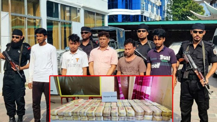 আটককৃতরা হলো—টেকনাফ পৌরসভার জালিয়াপাড়া এলাকার আবদুল শুক্কুরের ছেলে আলমগীর হোসেন (১৯), আলমগীরের মা সোনা মেহের (৫৫), একই এলাকার সৈয়দ হোসেনের ছেলে আবুল বশর (২২), টেকনাফের হ্নীলা ইউনিয়নের ফুলের ডেইল এলাকার সিরাজুল ইসলামের ছেলে মো. ফয়সাল (৩১), হ্নীলার জাদিরপাড়া এলাকার শামশুল আলমের ছেলে এমরান প্রকাশ লাদেন (২৮)।