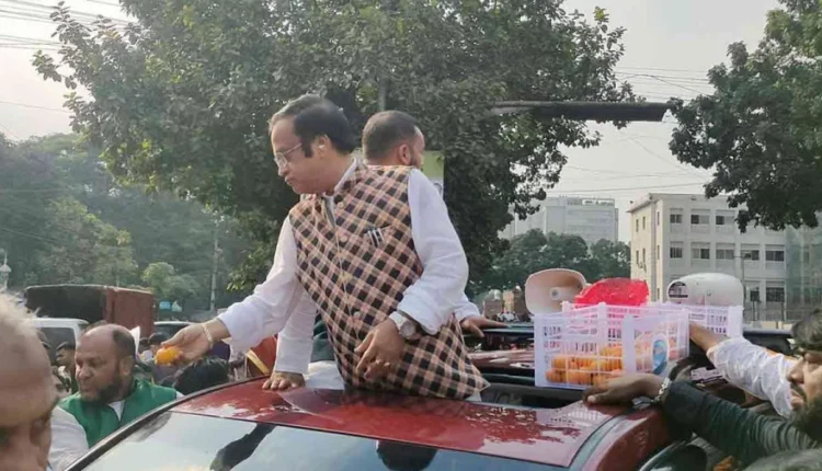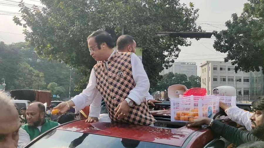 দ্বাদশ জাতীয় সংসদ নির্বাচনে আওয়ামী লীগ দলীয় মনোনয়ন ফরম জমা দিতে এসে নেতাকর্মীদের মধ্যে কমলা বিতরণ করেছেন ঢাকা-৭ আসনের সংসদ সদস্য হাজি সেলিম। এসময় তার সঙ্গে দুই ছেলে সোলায়মান সেলিম ও ইরফান সেলিমও ছিলেন। মঙ্গলবার (২১ নভেম্বর) দুপুরে রাজধানীর বঙ্গবন্ধু অ্যাভিনিউয়ে দলের কেন্দ্রীয় কার্যালয়ের সামনে এ দৃশ্য দেখা যায়। প্রত্যক্ষদর্শীরা জানান, প্রায় ১০ হাজার কর্মী-সমর্থক নিয়ে মনোনয়ন ফরম জমা দিতে আসেন হাজি সেলিম। ৩০টির বেশি ঘোড়ার গাড়ি, পিক-আপ, মোটরসাইকেল, প্রাইভেটকারসহ বিশাল গাড়ি বহর নিয়ে আসেন তারা। এসময় তার ছাদখোলা প্রাডো গাড়ির পাশেই ছিলেন ছেলে সোলায়মান সেলিম। তারা দুজনেই হাত নেড়ে আশপাশে থাকা নেতাকর্মীদের শুভেচ্ছা জানান। তারা পথচারী ও সঙ্গে থাকা নেতাকর্মীদের লক্ষ্য করে ছোট কমলা ছুড়ে দেন। পরে গাড়ি থেকে নেমে নেতাকর্মীদের ভিড় ঠেলে আওয়ামী লীগের কেন্দ্রীয় কার্যালয়ে প্রবেশ করেন তিনি। বিপুল সংখ্যক কর্মী-সমর্থকদের কারণে সেসময় সচিবালয়, গুলিস্তান থেকে জিপিও সড়ক পর্যন্ত দীর্ঘ যানজটের সৃষ্টি হয়। জানা যায়, দ্বাদশ জাতীয় সংসদ নির্বাচনে অংশ নিতে সেলিম পরিবার তিনটি মনোনয়ন ফরম সংগ্রহ করেছেন। যার মধ্যে একটি হাজি মো. সেলিমের নামে। অপর দুইটি তার বড় ছেলে সোলায়মান সেলিম ও ছোট ছেলে ইরফান সেলিমের নামে। তিনটি ফরমই গত রোববার ঢাকা-৭ আসন থেকে সংগ্রহ করা হয়।