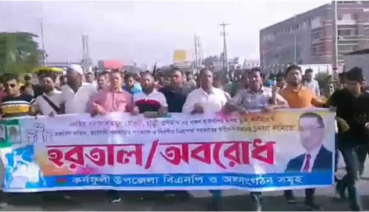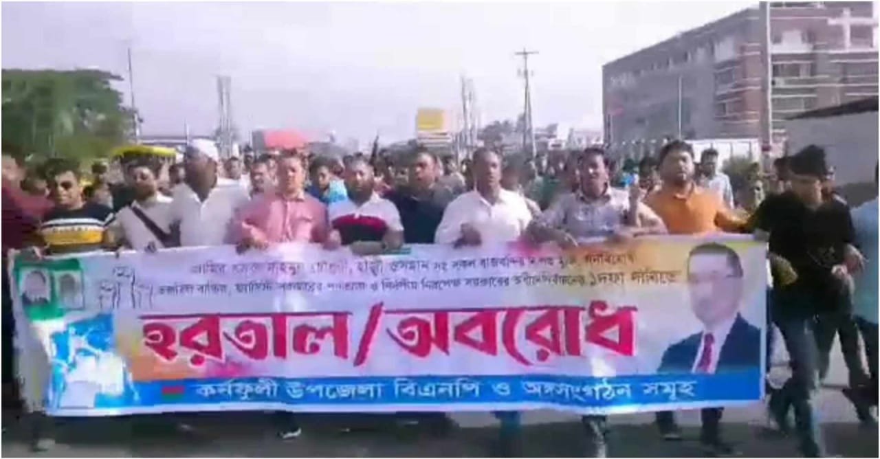 কর্ণফুলীতে অবরোধের সমর্থনে বিএনপির বিক্ষোভ মিছিল