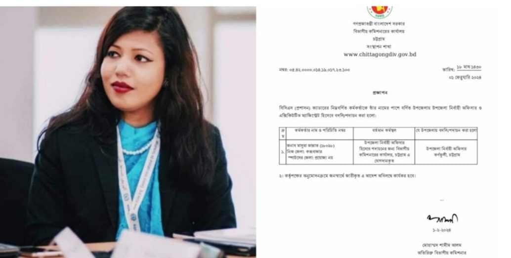 আজ বৃহস্পতিবার (১লা ফেব্রুয়ারী) সকালে চট্টগ্রাম বিভাগীয় কমিশনার কার্যালয়ের অতিরিক্ত কমিশনার মোহাম্মদ শামীম আলম স্বাক্ষরিত এক আদেশে কর্ণফুলীতে মাসুমা জান্নাতকে ইউএনও হিসেবে পদায়ন করা হয়।