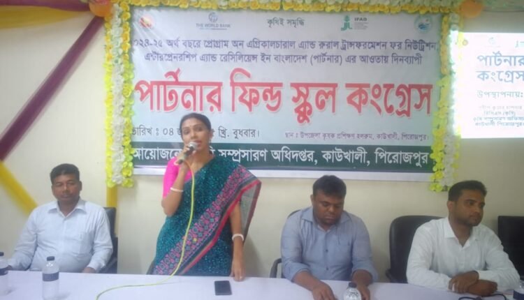 কাউখালীতে কৃষি সম্প্রসারণ অধিদপ্তরের উদ্যোগে ৪ জুন বুধবার প্রোগ্রাম অন এগ্রিকালচারাল এন্ড রুরাল ট্রান্সফরমেশন ফর নিউট্রিশন এন্টারপ্রেনরশিপ এন্ড রেসিলিয়েন্স ইন বাংলাদেশ (পার্টনার) এর আওতায় ফিল্ড স্কুল কংগ্রেস অনুষ্ঠিত হয়েছে। উপজেলা নির্বাহী অফিসার স্বজল মোল্লার সভাপতিত্বে উপজেলা কৃষি সম্প্রসারণ অফিসার প্রদীপ কুমার হালদারের সঞ্চালনায় অনুষ্ঠিত ফিল্ড স্কুল কংগ্রেসে প্রান্তিক পর্যায়ে কৃষি ও কৃষকদের বিভিন্ন সম্ভাবনা ও প্রতিবন্ধকতা নিয়ে মূল বক্তব্য উপস্থাপন করেন উপজেলা কৃষি কর্মকর্তা সোমা রানী দাস। উপজেলার বিভিন্ন ইউনিয়নের মাঠ পর্যায়ে উৎপাদিত কৃষি ও কৃষি পণ্যের উপর একটি মাল্টিমিডিয়া প্রেজেন্টেশন উপস্থাপনা করেন ফিল্ড স্কুল কংগ্রেসে উপজেলার বিভিন্ন ইউনিয়নের দায়িত্বপ্রাপ্ত ব্লক সুপারভাইজারগন মাঠ পর্যায়ে তাদের বিভিন্ন অভিজ্ঞতা বর্ণনা করেন। উপজেলা নির্বাহী অফিসার তার বক্তব্যে বলেন খাদ্যে স্বয়ংসম্পূর্ণতা অর্জনের জন্য প্রান্তিক পর্যায়ের কৃষকদেরকে মাঠে যেতে হবে। উৎপাদন বাড়াতে হবে। এ ব্যাপারে তিনি সরকারের পক্ষ থেকে সব ধরনের সহযোগিতার আশ্বাস দেন। উক্ত অনুষ্ঠানে স্থানীয় গণ্যমান্য ব্যক্তি বিভিন্ন ইলেকট্রনিক ও প্রিন্ট মিডিয়ার সাংবাদিক নেতৃবৃন্দসহ উপজেলার বিভিন্ন ইউনিয়নের প্রশিক্ষিত ও শিক্ষা নবীশ কৃষক অংশগ্রহণ করেন।