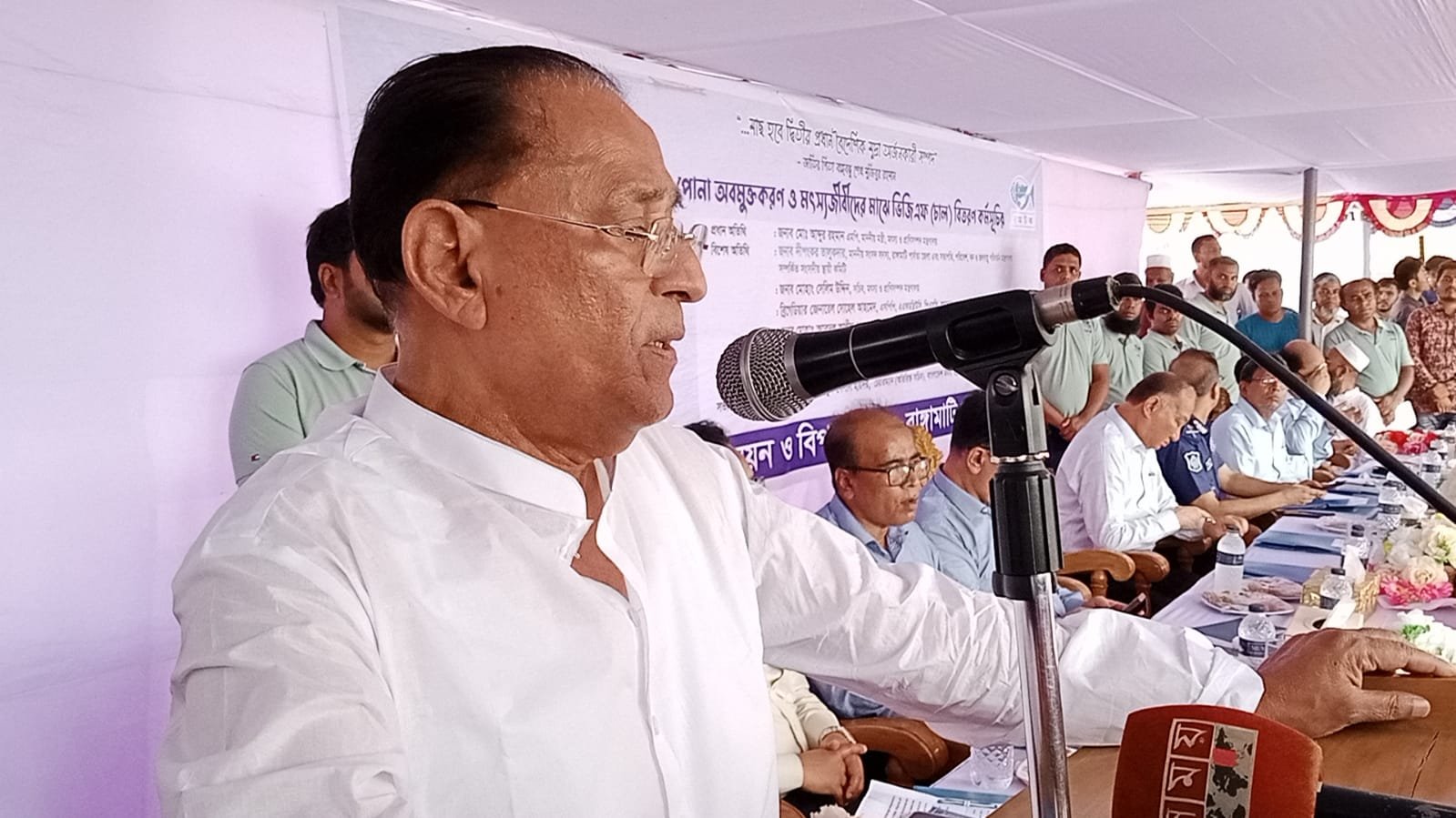 বাংলাদেশ মৎস্য উন্নয়ন কর্পোরেশনের চেয়ারম্যান সাঈদ মাহমুদ বেলাল হায়দারের সভাপতিত্বে অনুষ্ঠিত সভায় বিশেষ অতিথি হিসেবে উপস্থিত ছিলেন, দীপংকর তালুকদার এমপি, মৎস্য ও প্রাণিসম্পদ মন্ত্রণালয়ের সচিব মোহা. সেলিম উদ্দিন, মৎস্য অধিদপ্তরের মহাপরিচালক সৈয়দ মো. আলমগীর, বাংলাদেশ মৎস্য গবেষণা ইসস্টিটিউটের মহাপরিচালক ড. মো. জুলফিকার আলী, পার্বত্য রাঙামাটি জেলার জেলা প্রশাসক মো. মোশারফ হোসেন খান। আব্দুর রহমান বলেন, কাপ্তাই লেক তার সেই আগের সৌন্দর্য, রূপে নেই। এটি যেন নুইয়ে পড়েছে। তবে সকলের সম্মিলিত প্রচেষ্টায় আমরা কাপ্তাই লেকের আগের সৌন্দর্য ফিরিয়ে আনতে চাই। তবে এই সৌন্দর্য ফিরিয়ে আনতে হলে শুধু মৎস্যজীবীদেরই নয়, এলাকার সর্বসাধারণের সহযোগিতা প্রয়োজন। জেলেদের উদ্দেশ্যে তিনি বলেন, আগামী তিন মাস আপনারা লেকে মাছ ধরবেন না। নির্দিষ্ট সময়ের পর নিষিদ্ধ ঘোষিত মশারি জাল, বেহুন্দী জাল, কারেন্ট জাল এগুলো ব্যবহার করবেন না। জাটকাসহ ছোট মাছ ধরবেন না। তিনি বলেন, আপনারা নিজ সন্তানকে যেমন পরিপূর্ণ করে গড়ে তোলেন, তেমনি মাছকেও বড় হতে দিতে হবে। কাপ্তাই লেকের সৌন্দর্য ফিরিয়ে আনতে যা যা করা দরকার সবকিছুই করা হবে। তিনি আরো বলেন, আপনাদের লেকের মাছ আপনারাই ধরবেন। অন্য এলাকা থেকে কেউ এসে এই মাছ ধরবে না। এই লেকের ব্যবস্থাপনায় আপনাদেরই এগিয়ে আসতে হবে। পানিসম্পদ মন্ত্রণালয়ের সঙ্গে যোগাযোগ করে কাপ্তাই লেক নিয়ে প্রকল্প গ্রহণের বিষয়ে উদ্যোগ গ্রহণ করা হবে বলে জানান মন্ত্রী। রাঙামাটির বতর্মান ফিস ল্যান্ডিং সেন্টারটি সংস্কার করে আধুনিক ও উন্নত মানের ফিস ল্যান্ডিং স্টেশন হিসেবে গড়ে তোলার উদ্যোগ গ্রহণ করা হবে বলেও জানান তিনি। কৃষি জমিতে ব্যবহার করা কীটনাশকের ফলে মাছের ব্যাপক ক্ষতি হচ্ছে জানিয়ে ফসলের জমিতে কীটনাশকের ব্যবহারে সবাইকে সতর্ক থাকার আহবান জানান মন্ত্রীতবে কেউ যদি আইনের ব্যত্যয় ঘটিয়ে কিছু করে, তবে আইন অনুযায়ী ব্যবস্থা গ্রহণ করা হবে বলেও কঠোর হুশিয়ারি উচ্চারণ করেন তিনি। এসময় তিনি কাপ্তাই লেকে পোনা অবমুক্ত করেন এবং জেলেদের মধ্যে ভিজিএফ (চাল) বিতরণ করেন। কাপ্তাই হ্রদে মাছ আহরণ বন্ধ থাকার সময়ে মৎস্যজীবীরা কর্মহীন হয়ে পড়ে। এ সময় সরকার নিবন্ধিত মৎস্যজীবী সম্প্রদায়কে বিশেষ ভিজিএফ কার্ডের মাধ্যমে চাল বিতরণের জন্য ২০১০ সালে প্রথমে ২৫০৮ (দুই হাজার পাঁচশত আট জন) মৎস্যজীবী পরিবারকে খাদ্য সহায়তার আওতায় নিয়ে আসে। কোন প্রকৃত মৎস্যজীবী যাতে সরকারের এ বিশেষ সহযোগিতা থেকে বঞ্চিত না হয় সেজন্য প্রতি বছর জেলেদের তথ্য হালনাগাদ করা হয়। এরই ধারাবাহিকতায় চলতি বছরে ২৬ হাজার ৮৬৬ জন জেলে পরিবারকে ভিজিএফ কার্ডের আওতায় নিয়ে আসা হয়েছে। এ বছর ২৫ এ