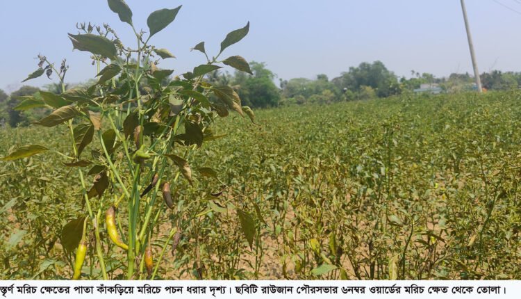 চট্টগ্রামের রাউজানে শোষক পোকার (ক্ষুদে মাকড় বা মাইট) আক্রমণে ক্ষতিগ্রস্ত হচ্ছেন মরিচ চাষীরা। পোকার আক্রমণে মরিচ পাতা কোঁকড়িয়ে মরিচ নষ্ট ও ফলন বৃদ্ধিতে প্রতিবন্ধকতা সৃষ্টি হওয়ায় বিপাকে পড়েছেন কৃষকেরা।