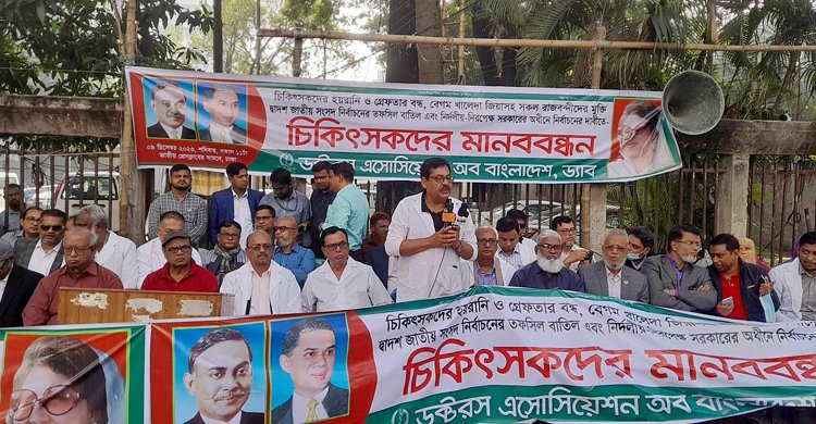 বিএনপির স্থায়ী কমিটির সদস্য বেগম সেলিমা রহমান বলেছেন, আজকে সারাদেশের মানুষ রাজপথে নেমে এসেছে। জনগণ তাদের হ্যাডম দিয়ে আপনাদের রুখে দেবেন। একজনের (শাহাজাহান ওমর) হ্যাডমের ভয় দেখিয়ে লাভ নেই। দেশের মানুষ শান্তিপূর্ণ আন্দোলনের মাধ্যমেই তাদের অধিকার পুনরুদ্ধার করবে এবং সরকারের নির্বাচন নির্বাচন নাটক রুখে দেবে। শনিবার (৯ ডিসেম্বর) দুপুরে রাজধানীর জাতীয় প্রেসক্লাবের সামনে এক মানববন্ধনে প্রধান অতিথির বক্তব্যে তিনি এসব কথা বলেন। চিকিৎসকদের হয়রানি ও গ্রেফতার বন্ধ, বেগম খালেদা জিয়াসহ বন্দিদের মুক্তি এবং দ্বাদশ সংসদ নির্বাচনের তফসিল বাতিল ও নির্দলীয় তত্ত্বাবধায়ক সরকারের অধীনে নির্বাচনের দাবিতে চিকিৎসকদের এই মানববন্ধনের আয়োজন করে ডক্টরস অ্যাসোসিয়েশন অব বাংলাদেশ (ড্যাব)। বেগম সেলিমা রহমান বলেন, আমরা কোন দেশে বাস করছি? আজকে গুম খুন ও মানবাধিকার লঙ্ঘনের শিকার ব্যক্তিরা তাদের কথা বলতে পারে না। মানবাধিকার দিবস সামনে রেখে জাতীয় জাদুঘরের সামনে কর্মসূচি করতে দেয়নি। সরকার এতো ভীতু যে তাদেরকে কর্মসূচি করতে দেয় না। তিনি বলেন, জনগণের ট্যাক্সের টাকায় যাদের জীবন চলে সেই পুলিশ বেআইনিভাবে দমন পীড়ন ও গ্রেফতার করছে। তারা গণতন্ত্রের আন্দোলন রুখে দিতে মিথ্যা ও গায়েবি মামলা দিচ্ছে। শান্তি বাহিনীর মতো সন্ত্রাস সৃষ্টি করছে। আমরা যখনই সমাবেশ দিই তখনই তারা পাল্টা শান্তি সমাবেশ করে। শান্তি বাহিনীর মতো বিএনপি ও বিরোধী দলীয় নেতাকর্মীদের বাড়িতে বাড়িতে হানা দিচ্ছে। মনে রাখবেন এটাই শেষ দিন নয়। বিপ্লবী ওয়ার্কার্স পার্টির সাধারণ সম্পাদক সাইফুল হক বলেন, এই সরকার দেশের মানুষের ভাত ও ভোটাধিকার কেড়ে নিয়েছে। ২২ হাজারের বেশি নেতাকর্মীকে গ্রেফতার করেছে। সাড়ে ৮ শতাধিক নেতাকর্মীকে বিভিন্ন মেয়াদে সাজা দিয়েছে। এমনকি মৃত ব্যাক্তিকেও সাজা দিয়েছে। কী ভয়ংকর পরিস্থিতি? আজকে একই মামলায় মির্জা ফখরুলসহ অনেকেই কারাগারে আর একই মামলায় শাহজাহান ওমরের জামিন মিলে! কী প্রহসন। এটা তো প্রমাণিত যে, বিরোধী দলকে রাজনৈতিকভাবে হয়রানির জন্য এসব করা হয়েছে। তবে এবার জনগণের বিজয় সুনিশ্চিত। ড্যাবের সিনিয়র সহ-সভাপতি ডা. এমএ সেলিম বলেন, আমরা কী আজকে সত্যি স্বাধীনতা অর্জন করেছি? আজকে বিরোধী দলের প্রায় দুই লাখ নেতাকর্মী ঘরবাড়ি ছেড়ে বনে বাদারে রাত কাটাচ্ছে। আজকে প্রধানমন্ত্রী মার্চ মাসে দুর্ভিক্ষের আশঙ্কা প্রকাশ করেছেন! কেনো? আপনি পদত্যাগ করে নির্দলীয় তত্ত্বাবধায়ক সরকারের অধীনে নির্বাচন দিন। অন্য বক্তারাও বলেন, আওয়ামী ও প্রধানমন্ত্রী কতটা দেউলিয়া হলে পরে একতরফা নির্বাচন করতে গিয়ে ডামি প্রার্থী দিয়েছেন! এই সরকারের অধীনে সুষ্ঠু নির্বাচন কীভাবে হবে?