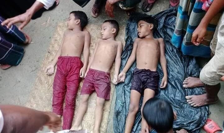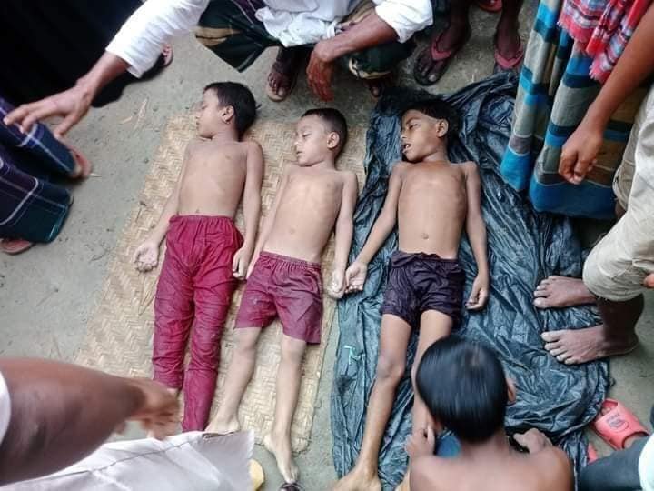 নিহত তিন শিশু হলো, ওই গ্রামের রফিকুল ইসলামের মেয়ে সানিয়া (৮) ও ছেলে মেহেদী (৬) একই গ্রামের মন্নাছ আলীর মেয়ে নুসরাত (৮)।