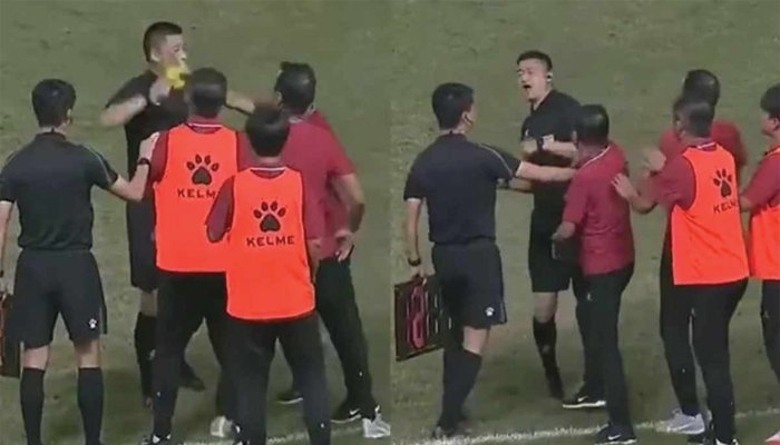 ফুটবলে মেজাজ হারিয়ে ফেলার ঘটনা একেবারেই বিরল নয়।  খেলার মাঠে ফাউল বা ট্যাকেল তো বটেই, রেফারির সিদ্ধান্তেও মেজাজ হারানোর ঘটনা হরহামেশাই দেখা যায়।  তবে, রেগে গিয়ে রেফারিকে চড় মারার ঘটনা হয়ত কিছুটা বিরলই।  আর, এমনই এক দৃশ্যের দেখা মিলেছে চীনের একটি ফুটবল লিগে।