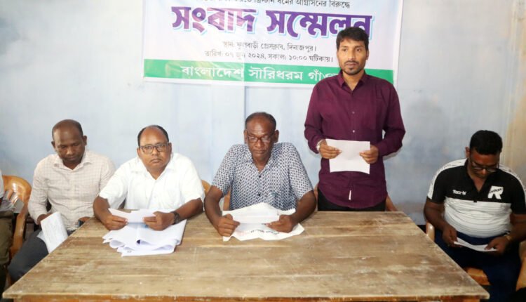 দিনাজপুরের ফুলবাড়ীতে বাংলাদেশ সারিধরম গাঁওতা এর উদ্যোগে সাঁওতালসহ সকল জনগোষ্ঠীর ধর্ম ও জাতিগত বৈচিত্র্যতা এবং দেশের অখণ্ডতা রক্ষা করতে খ্রিষ্টধর্মের আগ্রাসনের বিরুদ্ধে প্রতিবাদ জানিয়ে সংবাদ সম্মেলন করা হয়েছে। শুক্রবার সকাল ১০ টায় ফুলবাড়ী প্রেসক্লাব কার্যালয়ে আয়োজিত সংবাদ সম্মেলনে আনুষ্ঠানিকভাবে লিখিত বক্তব্য পাঠ করেন সংগঠনটির সাধারণ সম্পাদক নরেশ হেমব্রম। এসময় উপস্থিত ছিলেন বাংলাদেশ সারিধরম গাঁওতা এর সভাপতি চুন্নু টুডু, সাংগঠনিক সম্পাদক সুবাস মুর্মু, কোষাধ্যক্ষ সুনিল হাঁসদা, সদস্য নির্মল মার্ডী, রবিন মুর্মু, মনিরাজ হেমব্রম, রাজেন মার্ডী প্রমুখ। লিখিত বক্তব্যে নরেশ হেমব্রম বলেন, ২০১৯ সালে প্রকাশিত ক্ষুদ্র নৃ-গোষ্ঠির গেজেটে সাঁওতালসহ ৫০টি জাতিসক্তজ্ঞ অন্তর্ভুক্ত করা হয়েছে। গেজেটে অন্তর্ভুক্ত প্রত্যেকটি জাতিসত্তা নিজস্ব ভাষা, ধর্ম ও সংস্কৃতি তথ্য জাতিগত বৈচিত্র্যতা বিদ্যমান। আমরা সাঁওতাল। আমাদের ধর্মের নাম সারিধরম। আমাদের সরলতাকে পুঁজি করে খ্রিস্টধর্ম ব্যবসায়ী প্রতারক, ভণ্ডু, ধর্ম প্রচারক, মানবসেবা, উন্নয়ন, কর্মসংস্থান, ভাল চাকরি, বিদেশে ভ্রমণ, নগদ অর্থ, বাড়ী-ঘর পাঁকা করাসহ বিভিন্ন প্রলোভন দিয়ে আমাদের সাথে সু-সম্পক তৈরি করে। পরে আমাদের জমিতে কৌশলে বিভিন্ন খ্রিষ্টধর্মের উপসানালয় তথ্য গীর্জাঘর বানায় এবং সেখানে খ্রিষ্টধর্ম পালনে বাধ্য করে। তারা আমাদেরকে জীবনযাত্রার মান উন্নয়ন ঘটানোর প্রলোভন দেখায়। এভাবে অনেককে নিজেদের ফাঁদে ফেলেন তারা। আমাদের নিকট তারা প্রতিজ্ঞাবদ্ধ হলেও আজো আমরা কিছু পাইনি। আমরা ৫৪ বছরে যা হারালাম তা আর কি ফিরে পাব? নিজের কাছে নিজের অনেক প্রশ্ন। আমরা জাতিগতভাবে পিছিয়ে, রাষ্ট্রীয় সুযোগ-সুবিধা থেকে বঞ্চিত, সাঁওতাল পরিচয় থেকে বঞ্চিত। আমাদের জমি-জমা, ঘর-বাড়ী, চাকরি, ব্যবসা, বাণিজ্য সবকিছু থেকে অবহেলিত ও বঞ্চিত। আমরা আজ আহ্বান জানাই দেশের সকল সাঁওতাল যারা প্রলোভনে খ্রিষ্টধর্ম গ্রহণ করেছিলেন, তারা নিজ সারিধরমে ফিরে আসতে। মহান ৭১’র স্বাধীনতা যুদ্ধ থেকে শুরু করে সকল গণতান্ত্রিক আন্দোলন সংগ্রামে আমরা সক্রিয় ভূমিকা রেখেছি। ইতোপূর্বে ধর্মব্যবসায়ী প্রতারকদের বিরুদ্ধে আইনগত ব্যবস্থা নেয়ার দাবি সরকারকে জানানো হলেও আজো কোনোপ্রকার ব্যবস্থাগ্রহণ করা হয়নি।