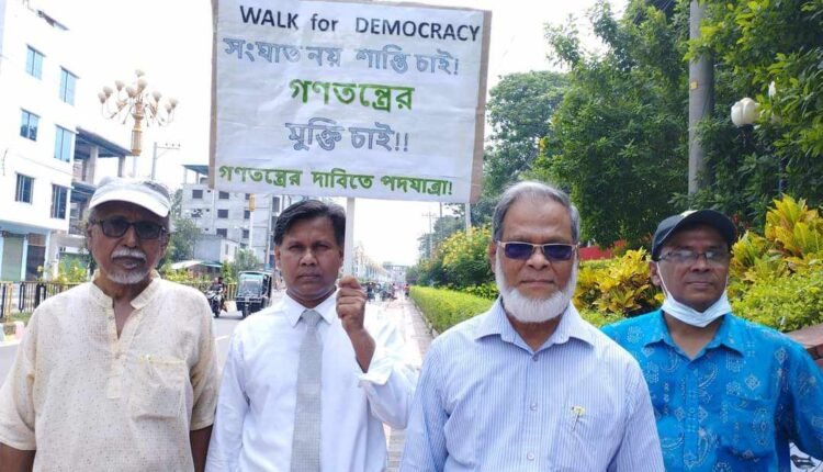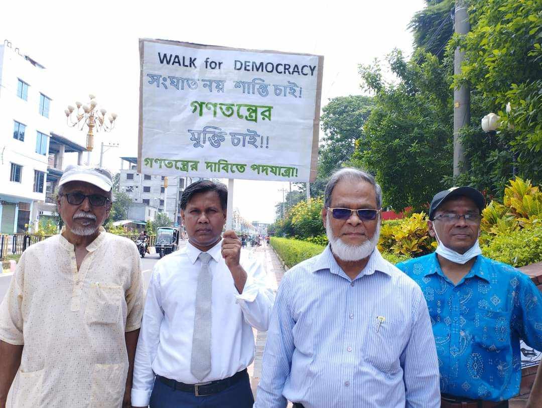 দেশে গণতান্ত্রিক কাঠামো ফিরিয়ে আনার দাবিতে পদযাত্রা কর্মসূচি পালন করেছেন রাজশাহী বিশ্ববিদ্যালয়ের অর্থনীতি বিভাগের অধ্যাপক ফরিদ উদ্দিন খান।