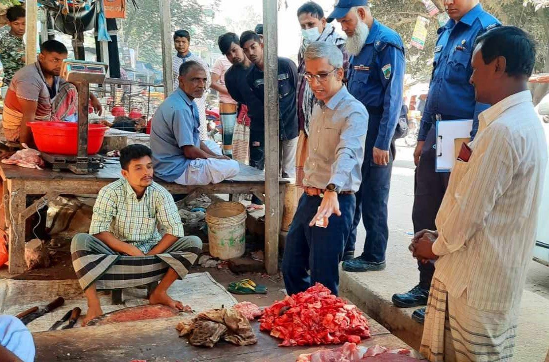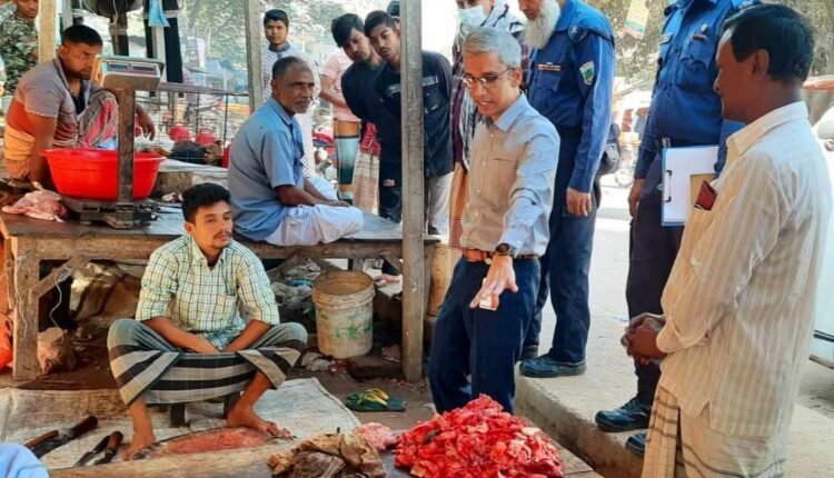 জেলা ভোক্তা অধিকার সংরক্ষণ অধিদপ্তরের সহকারী পরিচালক হাসান-আল-মারুফ বলেন, গোপন সংবাদের ভিত্তিতে ওই দুটি মাংসের দোকানে অভিযান চালানো হয়।