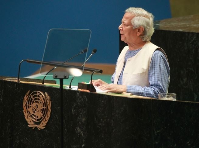 শুক্রবার (সেপ্টেম্বর ২৭) যুক্তরাষ্ট্রের নিউইয়র্কে জাতিসংঘের সাধারণ পরিষদের ৭৯তম অধিবেশনে দেওয়া ভাষণে এ আহ্বান জানান শান্তিতে নোবেল বিজয়ী অধ্যাপক ইউনূস। প্রধান উপদেষ্টা বলেন, বহুমুখী সংকটে জর্জরিত বর্তমান বিশ্বে, যুদ্ধ এবং সংঘাতের ফলে ব্যাপকভিত্তিতে মানুষের অধিকার খর্ব হচ্ছে।