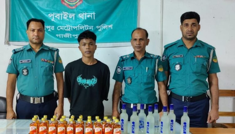 গাজীপুর মহানগরের পূবাইলে বিদেশি মদসহ ১ মাদক কারবারীকে আটক করেছে পূবাইল থানা পুলিশ।