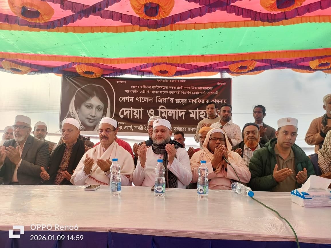 এ সময় বেগম খালেদা জিয়ার রুহের মাগফিরাত ও জান্নাতুল ফেরদৌস নসিব কামনা করে বিশেষ মোনাজাত করা হয়।