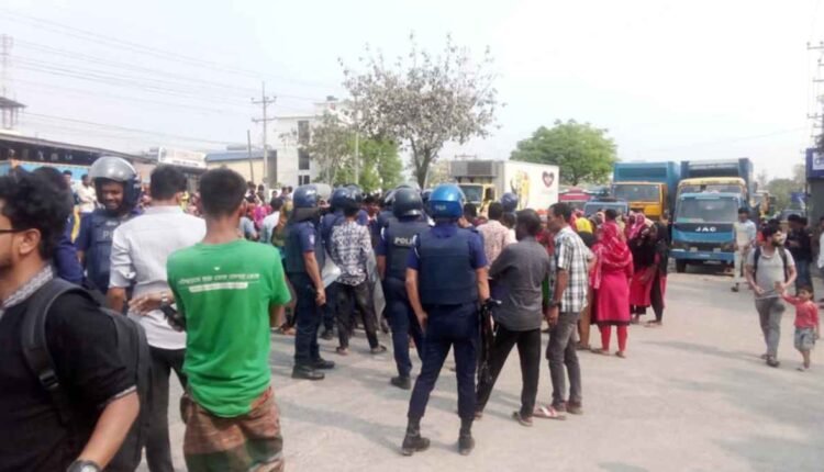 মঙ্গলবার (১৮ মার্চ) সকাল ৮টার দিকে শ্রমিকরা কারখানার ভেতরে বিক্ষোভ শুরু করেন।পুলিশ ও স্থানীয় সূত্রে জানা গেছে, বকেয়া বেতনের দাবিতে মঙ্গলবার (১৮ মার্চ) সকাল ৮টার দিকে শ্রমিকরা কারখানার ভেতরে বিক্ষোভ শুরু করেন। পরে সকাল ৯টার দিকে তারা ঢাকা-ময়মনসিংহ মহাসড়কে নেমে এসে অবরোধ সৃষ্টি করেন। এতে মহাসড়কে যান চলাচল বন্ধ হয়ে সাধারণ যাত্রীরা চরম ভোগান্তিতে পড়েন।