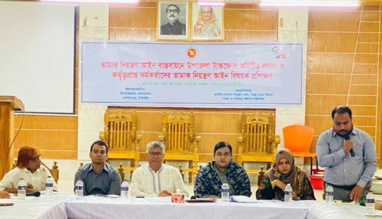 তামাক নিয়ন্ত্রণ আইন বাস্তবায়নে উপজেলা টাস্কফোর্স কমিটির আইনবিষয়ক এক প্রশিক্ষণ কর্মশালা আজ সোমবার গোপালপুর উপজেলা পরিষদ হলরুমে অনুষ্ঠিত হয়। স্বাস্থ্য ও পরিবার কল্যাণ মন্ত্রণালয়ের মন্ত্রণালয়ের জাতীয় তামাক নিয়ন্ত্রণ সেলের সহযোগিতায় উপজেলা প্রশাসন এ প্রশিক্ষণের আয়োজন করে। এতে সভাপতিত্ব করেন উপজেলা নির্বাহী অফিসার সৈয়দা ইয়াসমিন সুলতানা। বক্তব্য রাখেন উপজেলা পরিষদের ভারপ্রাপ্ত চেয়ারম্যান মীর রেজাউল হক, সহকারি কমিশনার (ভূমি) নাজমুল হাসান, উপেজলা কৃষি অফিসার শামীমা আক্তার, প্রাণীসম্পদ অফিসার ডাক্তার শরীফ আব্দুল বাছেদ, শিক্ষা অফিসার মফিজুর রহমান জিন্নাহ, প্রেসক্লাব সভাপতি জয়নাল আবেদীন প্রমুখ।