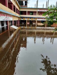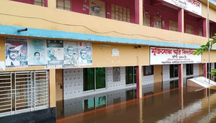 নারায়ণগঞ্জ প্রতিনিধি :ঘূর্ণিঝড় রেমালের প্রভাবে রোববার রাত থেকে সোমবার রাত পর্যন্ত টানা বৃষ্টি হওয়ায় নারায়ণগঞ্জ সদর উপজেলাধীন হাজীগঞ্জ এলাকায় অবস্থিত মুক্তিযোদ্ধা স্মৃতি বিদ্যানিকেতন স্কুল সহ রাস্তাঘাট এখনও তলিয়ে আছে। স্কুলের কোথাও কোথাও কোমর সমান পর্যন্ত পানি। শ্রেণিকক্ষেও হাঁটুপানি বিরাজ করছে। ফলে চরম ভোগান্তির শিকার হতে হচ্ছে শিক্ষক- শিক্ষার্থীসহ অভিভাবকদের। পানি ক্লাসরুমে ঢুকে যাওয়ায় নষ্ট হচ্ছে বিদ্যালয়ের আসবাবপত্র ও গুরুত্বপূর্ণ কাগজ।