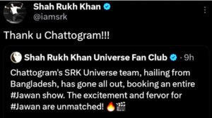 নিজের দেশের বাইরে ভক্তদের এমন ভালোবাসা দেখে ব্যাপক আবেগী হয়ে চট্টগ্রামের ভক্তদের ধন্যবাদ জানান শাহরুখ খান। আর বলিউড বাদশার কাছ থেকে এমন বার্তা পেয়ে উচ্ছ্বসিত চট্টগ্রামের শাহরুখ ভক্তরাও। এরপরই শাহরুখের করা সেই পোস্টে চট্টগ্রামের ভক্তরা ভালোবাসার শুভেচ্ছা ছড়িয়ে দিতে শুরু করে।