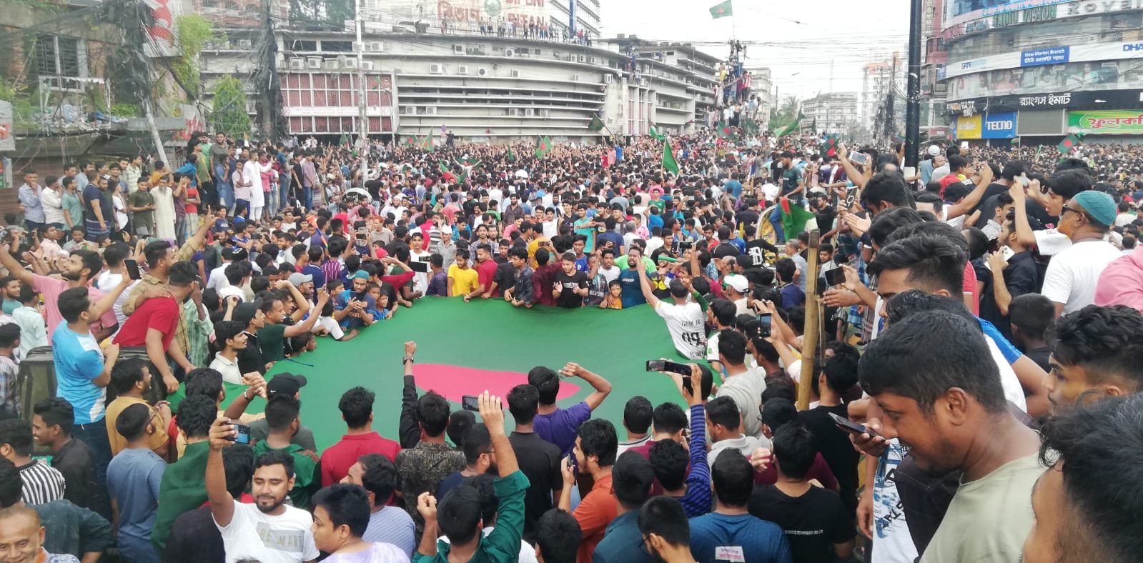সোমবার (৫ আগস্ট) বিকেলে গণমাধ্যমে পদত্যাগের খবর প্রচার হওয়ার সঙ্গে সঙ্গে রাস্তায় নেমে আসে মানুষ।