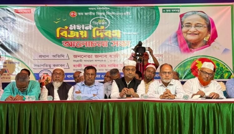 চট্টগ্রামের ইপিজেড এলাকায় মহান বিজয় দিবসকে সামনে রেখে আলোচনা সভা অনুষ্ঠিত হয়েছে। রোববার (১০ ডিসেম্বর) বিকেলে দক্ষিণ হালিশহর উচ্চ বিদ্যালয় মাঠে এই সভার আয়োজন করে ইপিজেড থানা ও ৩৯ নম্বর ওয়ার্ড আওয়ামী লীগ। সভায় প্রধান অতিথি হিসেবে উপস্থিত ছিলেন চট্টগ্রাম-১১ আসনের স্বতন্ত্র প্রার্থী আওয়ামী লীগ নেতা জিয়াউল হক সুমন।