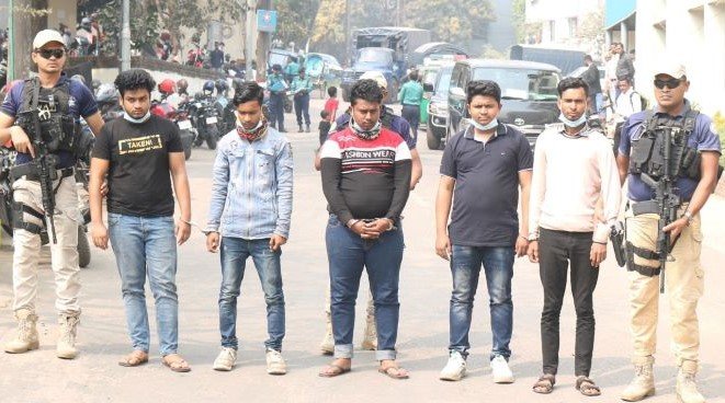 গ্রেফতারকৃতরা হলেন— মো. সাগর আহমেদ জোভান (২৩), শেখ সেজান (২৩), মেহেদী হাসান (২৩), মো. শাকিল হোসেন (২৩) এবং মো. মাসুদ রানা (২৭)।