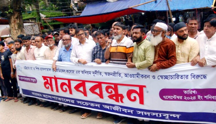 চট্টগ্রাম মা ও শিশু হাসপাতালের অনিয়ম দুর্নীতির বিরুদ্ধে মানববন্ধন