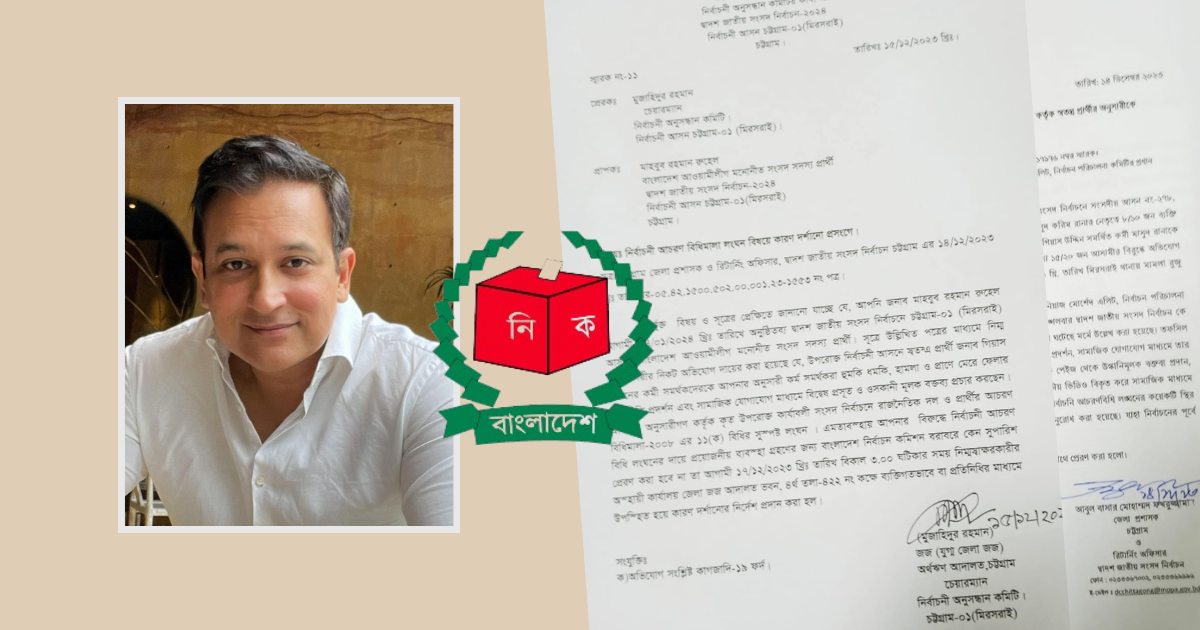 বৃহস্পতিবার (১৫ ডিসেম্বর) নির্বাচনী অনুসন্ধান কমিটির চেয়ারম্যান ও অর্থঋণ আদালতের বিচারক মুজাহিদুর রহমান এ নোটিশ দেন।