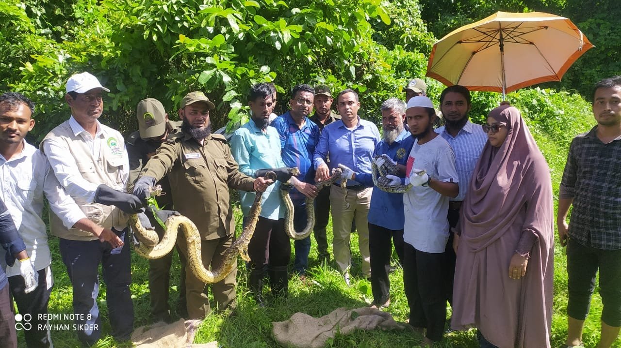 চট্টগ্রাম চিড়িয়াখানায় ক্যাপ্টিভ ব্রিডিং এর মাধ্যমে জন্ম নেওয়া ১৬টি বাচ্চা সাপ ও বিভিন্ন স্থান হতে উদ্ধারকৃত ১০টি অজগর সাপ অবমুক্ত করা হয়েছে।