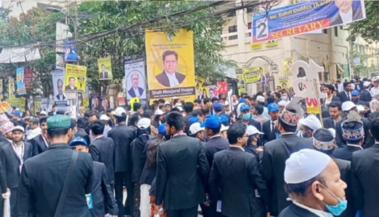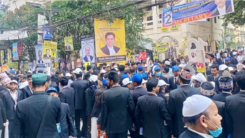 আইনজীবী সমিতির (২০২৪-২৫) কার্যকরী কমিটির নির্বাচনের ভোট ঘিরে জজ কোর্ট চত্ত্বরে ২টি ককটেল বিস্ফোরণের ঘটনা ঘটেছে। বুধবার (২৯ ফেব্রুয়ারি) কোর্ট চত্ত্বরে এই ঘটনা ঘটে। এর আগে নির্বাচনে দ্বিতীয় দিনে ভোটগ্রহণ স্থগিত করা হয়। জাল ভোট দেওয়ার অভিযোগ এনে আওয়ামী লীগ সমর্থিত বর্তমান কমিটির নেতারা ভোট কেন্দ্রে এসে জোরপূর্বক ভোটগ্রহণ স্থগিত করান বলে অভিযোগ বিএনপিপন্থী আইনজীবীদের। এ সময় ব্যালট ছিনতাইয়ের ঘটনা ঘটে। পরে ভোটগ্রহণ সাময়িকভাবে স্থগিত করা হয়। ঘটনায় সময় হাতাহাতি ঠেলাঠেলিতে বিএনপি সমর্থিত কয়েকজন আইনজীবী আহত হয়েছে বলেও জানান তারা। বৃহস্পতিবার (২৯ ফেব্রুয়ারি) সকাল ৯টায় দ্বিতীয় দিনের মতো ভোটগ্রহণ শুরু হয়। বুধবার প্রথম দিনের ভোটগ্রহণ অনুষ্ঠিত হয়। এবার নির্বাচনে ভোটার ২১ হাজার ১৩৭ জন। যার মধ্যে প্রথম দিনে চার হাজার ১৩০ জন ভোট দেন।