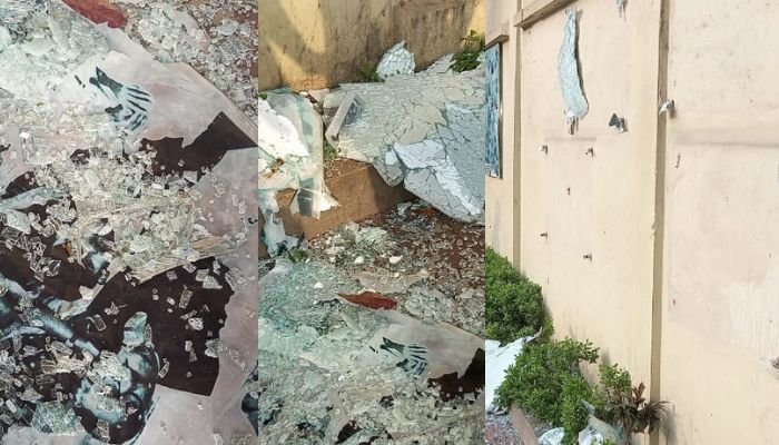 প্রত্যক্ষদর্শীরা জানান, চকবাজার ও চট্টগ্রাম কলেজ মোড় থেকে আসা বিএনপি, ছাত্র ও যুবদলের মিছিল যাওয়ার সময় লাঠিসোটা ও ইট ছুড়ে বঙ্গবন্ধু শেখ মুজিবুর রহমানের ছবি-ম্যুরাল ভাঙচুর করে।