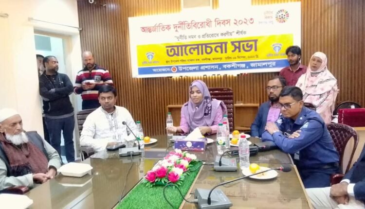 আলোচনা সভা,র্যালি ও মানববন্ধনসহ বিভিন্ন অনুষ্ঠানের মধ্য দিয়ে জামালপুরের বকশীগঞ্জে আন্তর্জাতিক দুর্নীতি প্রতিরোধ দিবস পালিত হয়েছে। র্যালি ও মানববন্ধনের পূর্বে ৯ ডিসেম্বর শনিবার সকালে উপজেলা কনফারেন্স রুমে আলোচনা সভা অনুষ্ঠিত হয়।