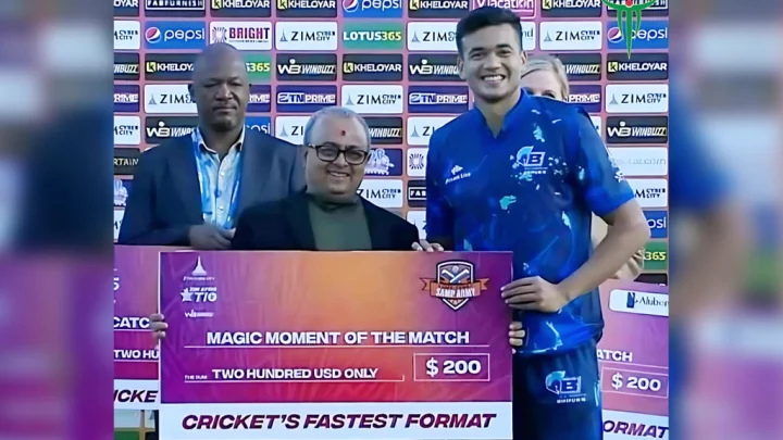 তাসকিনের ওভারে দুই উইকেট পড়লেও আক্রমণাত্মক ব্যাটিং চালিয়ে গেছে কেপটাউন। পেন্ডুলামের মতো দুলতে থাকা ম্যাচের নিষ্পত্তি হয়েছে শেষ ওভারে। ১০ ওভারে ৪ উইকেটে ১২২ রান করে কেপটাউন। বুলাওয়ের ৩ রানের জয়ে ম্যাচ-সেরা হয়েছেন কাইয়া। আর ‘ম্যাজিক মোমেন্ট অব দ্য ম্যাচের’ পুরস্কার পেয়েছেন তাসকিন।