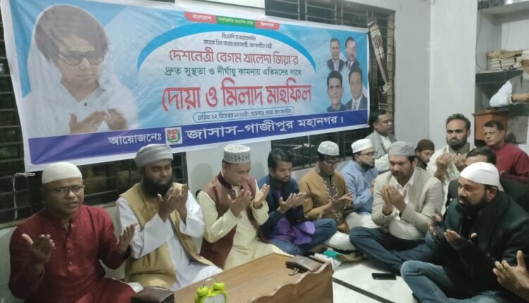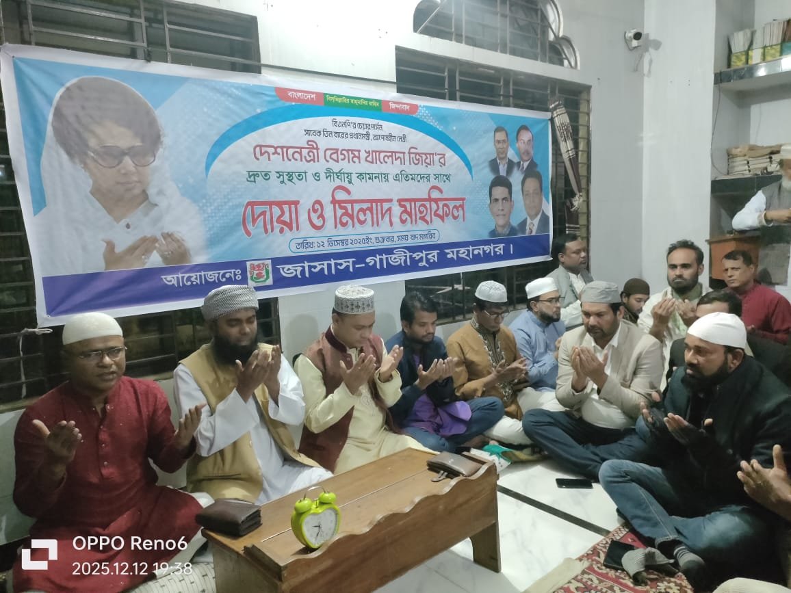 বিএনপির চেয়ারপার্সন ও সাবেক প্রধানমন্ত্রী বেগম খালেদা জিয়ার দ্রুত সুস্থতা রোগমুক্তি কামনায় টঙ্গীর সাতাইশ এরশাদ নগর মাদরাসাতু ওমর (রা:)আল ইসলামিয়া মাদ্রাসায় জাসাস গাজীপুর মহানগর এর উদ্যোগে দোয়া ও মাহফিলের আয়োজন করা হয়েছে।
