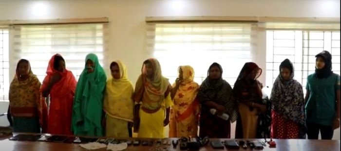 গ্রেফতারকৃতরা হল- সুমাইয়া আক্তার বৃষ্টি (১৮), শিউলী (৩৫), শাবানা আক্তার রিমু (২২), মোসাম্মৎ আছমা বেগম (৩৫), নাছিমা আক্তার (৩২), মোসাম্মৎ আমেনা খাতুন (২১), কোহিনুর বেগম (৩৫), নাজমা বেগম (৪০), আকলিমা (৩২) ও শ্যামল পোদ্দার (৪৭)। তারা সকলেই টঙ্গীর নতুন বাজার, ব্যাংক মাঠ বস্তি ও নওগাঁ এলাকার বাসিন্দা। তাদের কাছ থেকে ১৩টি মোবাইল ফোন, ১টি প্লাস, ১টি চাবির গোছা ও ১ভরি ওজনের স্বর্ণালংকার উদ্ধার করা হয়।